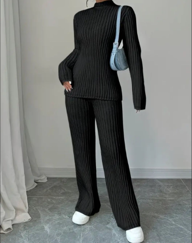 Schwarzes Strick-Ensemble für Damen