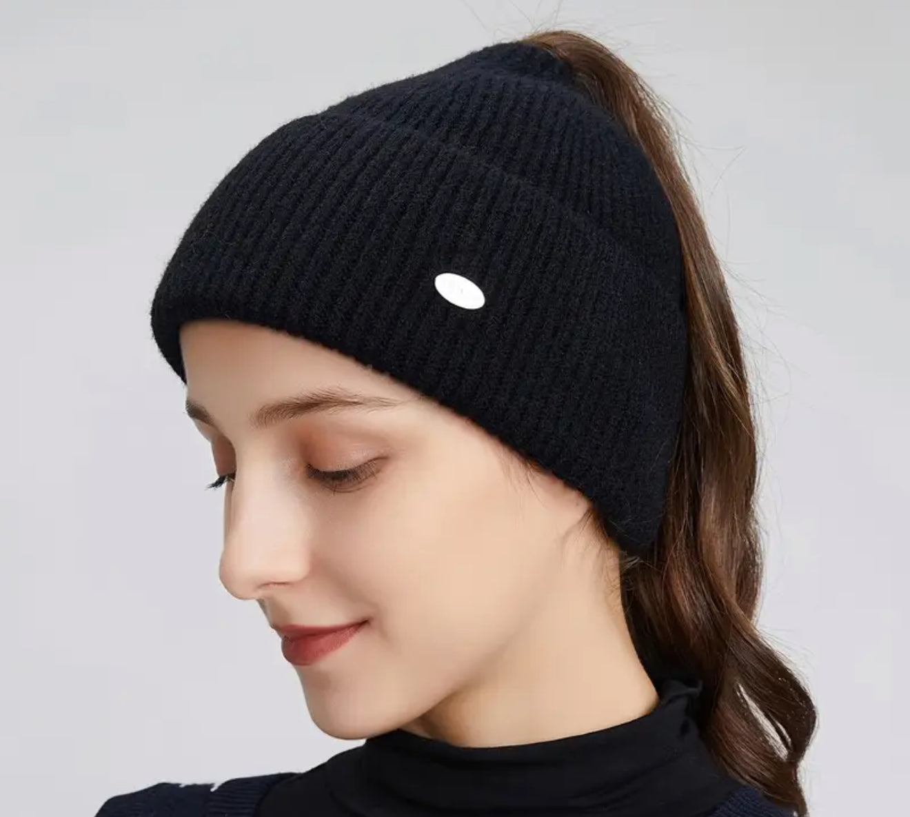 Warme Damenmütze mit Pferdeschwanzöffnung